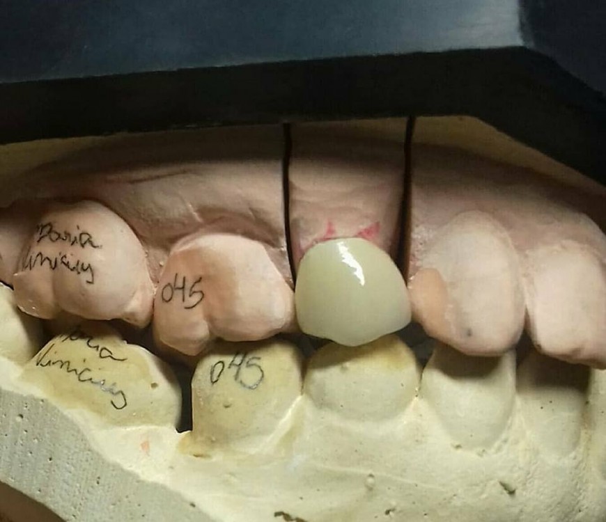 Prótese Metaloceramica no elemento 14. Cor A3.